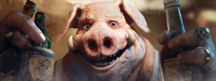 Pey'j, informally called 'Uncle Pey'j' and more uncommonly known as: 'Wild Boar', is a male sus sapiens. He was entrusted as the caretaker of Jade in 2415.