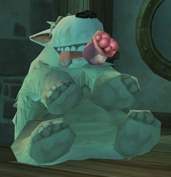 Woof is a gentle dog that loves to play and laze around the Lighthouse, both inside and outside. He can often be seen having a nap in the grass or in his reserved spot on the second level of the tower, in a little alcove just big enough for him to lie down. Although Woof is of a tranquil and loving nature, he can also be very mischievous at times. He loves to play with Jade, as seen when he darts away with a box of K-Bups that she attempted to swipe away from him, thus engaging a playful chase. He also enjoys chasing after ladybugs.